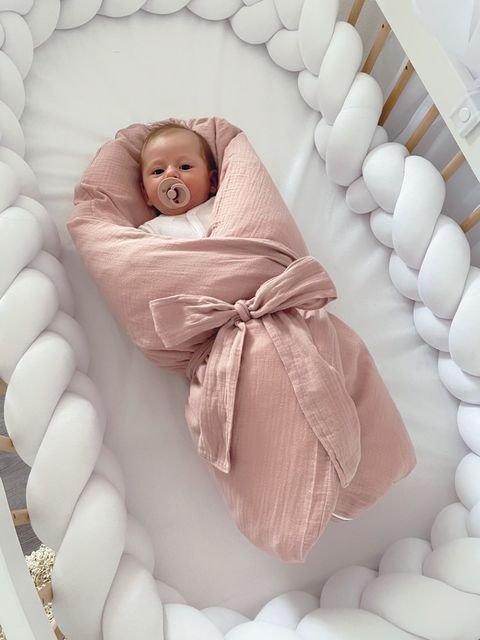 Povlaky šijeme ze 100% bavlny atestované pro děti do 3 let. Rozměry jsou 100 x 100 cm s jedním rohem zaobleným. Naše péřové zavinovačky se zavazují mašlí, která je velice flexibilní a umožňuje oboustranné využití. Pásek je součástí balení.